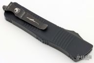 This Troodon by Microtech features a black blade with a standard edges. The handle has a carbon fiber and black aluminum frame with black hardware and tip down clip. Dated 09/2020 and s/n 046. Includes the original box and papers. Excellent condition.