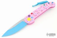 This LUDT by Microtech features a two-tone coated blade with fullers. The handle has a Dessert Warrior coated aluminum frame with multicolor hardware and tip up clip. Dated 01/2023. Comes with original box and paper. Excellent condition.