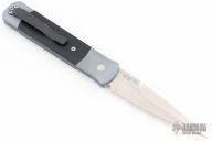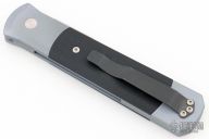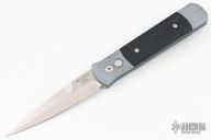 The Godfather 4" blade auto knife represents the influence of original Italian "Stilletto" style auto knife and Pro-Tech's modern coil spring precision. This Godfather has a satin finish blade and "pewter" handle with black G-10 inlays. Black coated stainless steel clip. Includes original box and papers. Excellent condition.