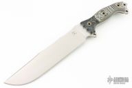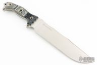This Custom Shop Fusion Battle Mistress (NMFBM) from the Busse Combat Knife Company features a satin finish blade, .266" blade stock, 2.162" blade depth, full tang construction. The handle has black G-10 bolsters with black/tan scales and liners. Excellent condition.