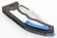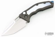 This Medusa by Heretic Knives features a hand ground high polish finish tanto blade with false top edge, notched thumbrest. The handle has a carbon fiber frame, MOP inlaid button, MOP inlays, anodized backspacer and a matching tip up stainless steel clip with ceramic ball. Comes with original box and COA dated 06/21 #006. Excellent condition.