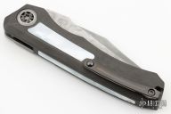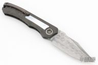 This Wraith Auto by Heretic Knives features a hand ground Damascus clip point blade with false top edge and notched thumbrest. The handle has a Damascus bolster with integral Fat Carbon Dunes handle with MOP inlays, a DLC tip up titanium clip, and lanyard hole at the butt.  Comes with original box and COA dated 05/22 #013. Excellent Condition.