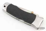 This SOG Winder II lock back by SOG features a satin finish blade with false top edge and dual thumbstuds. The handle has satin finished stainless steel bolsters, liners and backspacer, checkered rubber scales. Strong lock up. Has some light scratches and some oxidation on the butt, otherwise good condition.