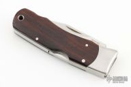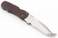This Stingray lock back by SOG features a satin finish blade with false top edge and nail nick. The handle has satin finished stainless steel bolsters, liners and backspacer, cocobolo scales. Strong lock up. Has some scratches, otherwise good condition. comes with a nylon sheath.