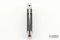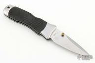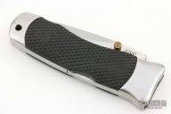 This SOG Winder II lock back by SOG features a satin finish blade with false top edge and dual thumbstuds. The handle has satin finished stainless steel bolsters, liners and backspacer, checkered rubber scales. Strong lock up. Has some scratches and light patina, otherwise good condition. Comes with a nylon velcro sheath.