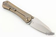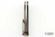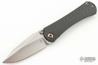This SBDP by Borka Blades features a stonewash finished blade with dual thumbstuds. The handle has a carbon fiber and stonewashed and anodize finish titanium frame with a matching tip up clip. Nice detent, lockup and blade seating. Comes with maker's card and Marfione zipper case. Excellent condition.