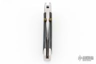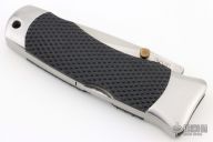 This SOG Winder II lock back by SOG features a satin finish blade with false top edge and dual thumbstuds. The handle has satin finished stainless steel bolsters, liners and backspacer, checkered rubber scales. Strong lock up. Has some light scratches, otherwise excellent condition. Comes with a nylon velcro sheath.