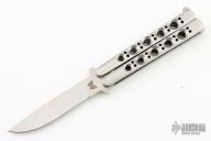 This is a Model 68 Bali-Song with a plain edge blade. The handles are stainless steel with a T-latch. Comes with original sheath and box. Has a couple light scratches, otherwise excellent condition. On the original box, in blue ball point pen, is written "Proto-type 68 w/ 154cm blade #4 of 12". No where on the knife is there any markings coinciding with this.