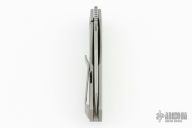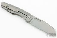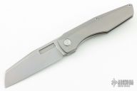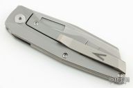 This Axon First Run Folder by Vero Engineering features a stonewashed blade with notched thumbrest and thumbhole. The handle has a bead blasted titanium frame with stainless steel lockface incert, tip up clip with hidden screws, titanium backspacer. Rides on bearings, nice detent, lockup and blade seating. Includes a padded zippered case and coa.  Excellent Conditon.