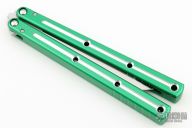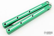 The highly anticipated Krake Raken balisong butterfly knife offers the first live-blade bali from Squid Industries. It features all of the precision-engineered smoothness of a Squid trainer, updated with a beautifully finished tanto blade. The channel constructed aluminum handles are built with rounded edges, a crowned spine, and bushings. The Krake Raken has been upgraded from 6061 to a 7075 aluminum alloy, which boasts a higher strength and is more durable to drops and use.