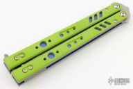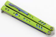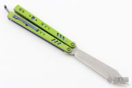 This BRS Replicant features a tumble finish clip point blade. The handle is comprised of green G-10 scales over anodized titanium liners and tumbled titanium backspacers. Stainless steel T latch included but not attached. Tip up 4-way reversible titanium clip. Has some marks on the blade, otherwise excellent condition.