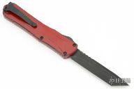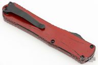 This Manticore-X by Heretic Knives features a DLC Tanto blade. The handle has a black aluminum frame with a red distressed finish and black stainless steel hardware. Tip down clip. S/N #00507. Excellent Condition.