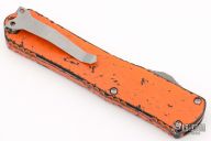 This Manticore-X by Heretic Knives features a stonewashed tanto blade. The handle has a black aluminum frame with a distressed orange finish and satin stainless steel hardware. Tip down clip. S/N #00424. Excellent Condition.