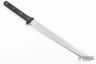 This Rodent Rucki by Swamp Rat Knives features a white coated blade, .191" blade stock and 1.354" blade depth, full tang construction. The handle has black G10 scales with hollow pins and an extended tang. Excellent condition. No signs of use or carry.