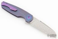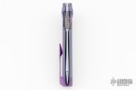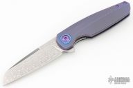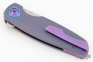 This Prestige Haptic by Holt Bladeworks features a Nidhogg Damasteel blade with a notched thumbrest and flipper tab. The handle features a milled titanium frame with a titanium tip up pocket clip with hidden hardware. Nice detent, lock up and blade seating. Includes zipper case, sticker, and card. Has a couple light marks on the clip otherwise Excellent Condition.