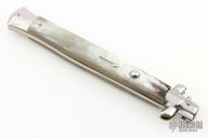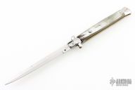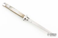 This 13" Picklock by "Made in Italy" features a stonewashed blade. The handle has stainless steel bolsters, front and rear, honey horn scales, brass liners, stainless spring. Excellent condition.
