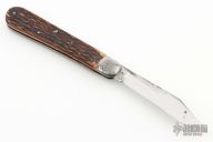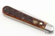 This antique auto by Presto features a mirror polished clip point blade. The handle has steel bolsters, jigged bone scales, steel liners and backspacer, has safety. Nice action and blade seating. Has some scratches and oxidation, otherwise good condition.