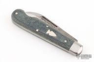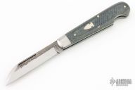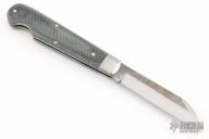 This knife from Northwoods Knives features a satin finished wharncliffe blade. The handle has stainless bolsters, liners and shield complimented by micarta covers. Includes a brown leather slip sheath. Excellent Condition.