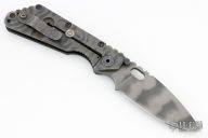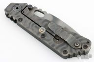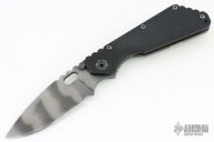 This SMF from Strider Knives features a tiger striped blade and textured black G-10 and flamed titanium handle and matching tip up titanium clip. Notches on thumbrest, rear of handle, and lockup. Includes Hinderer "Lock Bar Stabilizer" for maximum reverse lock retention. Has scuffs/scratches otherwise the knife is in good condition.