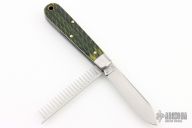 The Tidioute model 15 Barlow is a classic, traditional profile, single blade slip joint folder that has a timeless appeal. The Barlow pattern originated in Sheffield England, but it is American as “apple pie” thanks to the popularity in postcolonial America. A modified version of the classic design, the Urban Jack Knife retains the spear blade and teardrop handle with short bolsters for a more modern look paired with the BRR Tool (comb), popular for urban and rural carry. This version comes with a satin finished blade and OD Green canvas Micarta covers.