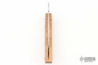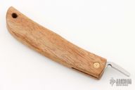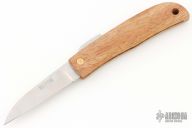 This friction folder by Yoshimi Kotoh features a tool steel blade with friction folder style opening. The handle is Hawaiian Koa wood with a lanyard hole at the butt. Comes with a leather pouch. New condition.