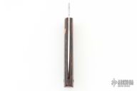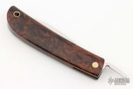 This friction folder by Yoshimi Kotoh features a tool steel blade with friction folder style opening. The handle is Ironwood with a lanyard hole at the butt. Comes with a leather pouch. New condition.