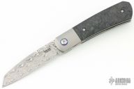 This Large Apache Front Flipper by Enrique Pena features a Damasteel blade with a front flipper and notched thumbrest. The handle has titanium bolsters, Dark Matter Purple Carbon Fiber scales with a titanium backspacer and MokuTi tip up pocket clip. Includes a Pena X-Series padded box.  Excellent condition.