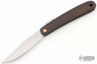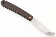 This friction folder by Yoshimi Kotoh features a VG-10 blade with friction folder style opening. The handle is Ebony wood with a lanyard hole at the butt. Comes with a leather pouch. New condition.