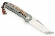 Arno Bernard's iMamba Frame Lock Flipper is a EDC designed for high performance and hard use. The blade is hard ground satin finished blade. Ball bearing pivot. The handle is bead blasted titanium with mammoth tooth inlays, bead blast finished titanium tip up clip. Comes with original box, hank and papers. Excellent condition.