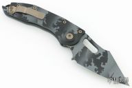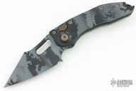 This Stitch Auto by Microtech Knives features an urban camo coated blade and false top edge, notched thumb and finger rests. The handle has an urban camo coated and milled aluminum handle with a titanium backspacer, stainless steel hardware and clip, tip up carry, lanyard hole at the butt. Comes with original box and papers. S/N of 250 and dated 02/2023. Excellent condition.