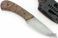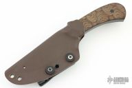 This BDU Belt Knife by Ben Tendick features a tumble finished drop point blade .195" blade stock and 1.373" blade depth, full tang construction. The handle has sculpted brown canvas micarta scales. Comes with a kydex sheath. Has a few light scratches, otherwise good condition.