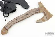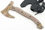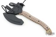 This Viking Hawk by Half Face Blades features a cerakote blade with hammer pole at the rear, .205" blade stock, full tang construction. The handle has canvas micarta scales. Comes with a kydex sheath. Excellent condition.