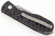 This Gripper Auto by Rob Dalton features a chisel ground tanto blade with a bead blasted finish. The handle has a black milled aluminum frame with a tip up clip. Nice action, lockup and blade seating. Has some light scuffs and scratches, otherwise great condition.