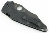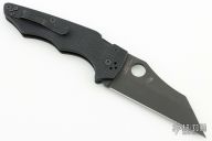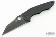 This Yojumbo by Spyderco features a black finished wharncliffe blade with thumbhole. The handle has a black G-10 frame with stainless steel liners, lock is on the spine of handle. 4-way reversible stainless steel clip. Nice detent, lockup and blade seating. Excellent condition.