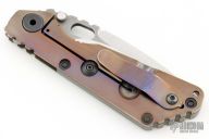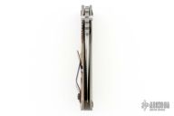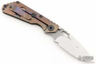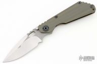 This MSC SnG CC by Mick Strider features a hand ground satin finished nightmare ground blade and a green G-10 and anodized and orange peel finished titanium handle and tip up clip. Notches on thumbrest, rear of handle, and lockup. Includes Hinderer "Lock Bar Stabilizer" for maximum reverse lock retention. Nice detent, lockup and blade seating. Excellent condition.