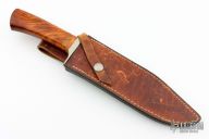 Made by Schrade in the USA.  440c 3/16" thick blade.  Maple handle with brass spacers and double guard in nickel silver guard.  1 7/8" blade depth. Comes with brown leather sheath. Has some light scratches and patina, otherwise excellent condition.