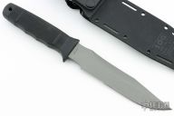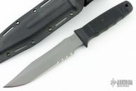 The Tigershark has a grey coated partially serrated blade with black zytel grip. Comes with a kydex sheath. Excellent condition.