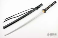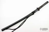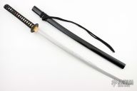 The Practical Plus Katana provides a very economical cutting sword as dependable as the Practical Katana (SH1070), but using more traditional fittings and construction methods. The blade is forged and differentially hardened in the traditional claying method with a prominent hamon. The Practical Plus features genuine Same (Rayskin) on the Tsuka, with a wrap (Tsuka-Ito) specially developed for its gripping qualities. The long tang is double-pegged for security. The fittings of the Practical Plus are decorated in a Japanese Dogwood motif with dragon menuki, and the handsome Tsuba is of an iron sunburst design with a brass habaki. Practical Plus Katana Specs: Differentially tempered blade Prominent hamon Iron tsuba Japanese dogwood fittings Genuine rayskin on tsuka Synthetic leather ito Double pegged flower menuki Great starter sword. Comes with original box. Has some light scratches, otherwise excellent condition.