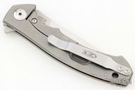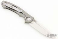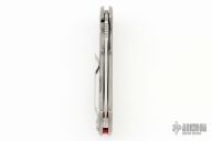 This 0450 Sinkevich designed folder from Zero Tolerance features a drop point blade with swedge and flipper. The handle is comprised of a tumbled titanium frame over red anodized aluminum stand offs, has stainless steel pocket clip. Excellent condition. Comes with original box.