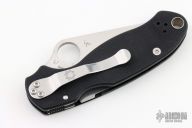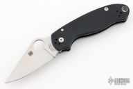 This C223GP Paramilitary 3 from Spyderco features a satin finished clip point blade with thumb hole and notched thumb ramp. The handle is comprised of a black G10 handle over steel sub frame and stand offs. The stainless steel pocket clip is 4-adjustable. Lanyard tube in pommel. Has a couple light scratches, has been resharpened, otherwise good condition.