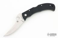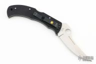 This C60P Massad Ayoob by Spyderco features a satin finished blade with thumbhole and notched thumbrest. The handle has a black G-10 scales, stainless steel liners with a black tip down reversible stainless clip. Has a little wear on the clip, otherwise excellent condition.