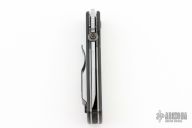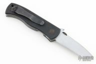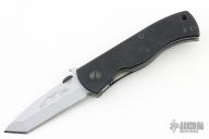 This Mini CQC-7 SF from Emerson features a silver tanto blade with notched thumbrest and thumbdisc. The handle has black G-10 scales, titanium liners, and a black tip up stainless steel clip. Nice detent, lockup and blade seating. Serial Number 0281 and dated 2006. Has some light scuffs and has been sharpened, otherwise good condition.
