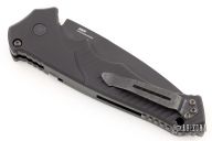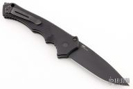 This Rukus II by Benchmade features a black blade with false top edge. The handle has a black aluminum frame with a black stainless steel tip up clip. Has a safety. Comes with original box. Excellent condition.