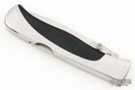 This Mamba Lockback from Blackjack Knives features a satin finished spear point blade with dual thumb studs. The handle has stainless steel scales with black linen micarta inlays. Comes with a nylon sheath. Has some light scratches, otherwise excellent condition.