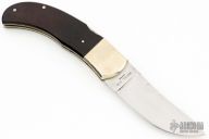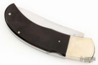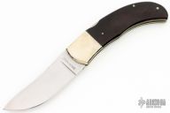 This Lockback by Browning features a satin finished blade with nail nick. The handle is comprised of dovetailed nickel silver bolsters and liners, rosewood scales with black spacers, and a stainless steel lock back. Includes original brown leather sheath. Has some scratches and light pitting, otherwise good user condition.