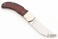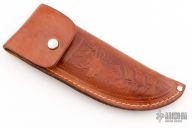 This Lockback by Browning features a satin finished blade with nail nick. The handle has nickel silver bolsters and liners, rosewood scales, and a stainless steel lock back. Includes brown leather sheath. Has some light scratches, otherwise excellent condition.