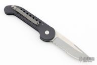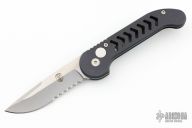 This Slim Seal Auto from Rob Dalton has a two-tone partially serrated blade with false top edge. Handle is black aluminum with milled "V" pattern and tip up titanium clip. Excellent condition. #070