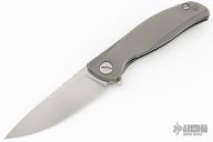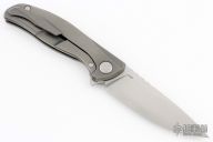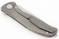 This Model 95 Zero framelock flipper from Shirogorov has a flat ground and tumbled blade with a milled and tumbled titanium frame with matching tip up clip. Excellent lockup, crisp detent, and perfect seating. Comes with original box and papers. New condition.