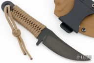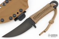 This SBK-L from Borka Blades features a DLC coated blade with .185" blade stock and 1.177" blade depth, full tang construction. The handle is comprised of paracord wrap. Includes kydex sheath, zippered case and COA. Excellent condition.