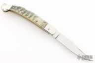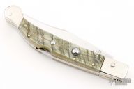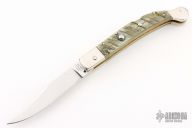 Angelo Campolin Sr. was born in 1923 in Maniago, Italy. He worked on perfecting his knife making skills before WWII and at this time made his first switchblades. After the war, in 1947 he started his company and made 30 stilettos with the marking “Angelo Campolin”. In the 1970’s Angelo’s son Gianni started to work in the company and they were specializing in folding hunting knives and also manual folding stilettos for the Robert Klaas company in Solingen Germany with their Kissing Cranes mark. In 2002 American switchblade collectors Dan Fuller, Brad West, and Tim Zinser were visiting Maniago and enjoying a few glasses of wine in a bar with Angelo Jr. and Gianni. The discussion was about a new name for some knife projects they wanted to pursue. It was Brad West that suggested the tang stamp should be AGA, for Angelo, Gianni, Angelo, thus representing three generations in the knife making business. The Campolins liked it and it stuck. In the beginning it was just a few items, but grew to the point where now there are 12 models and different scale options. The goal has been to offer quality switchblades using the old methods and traditions. Being a collector himself, Angelo Jr. knows what others like. The company headquarters has moved to Austria with production still in the original Maniago shop, as well as the others in Maniago that produce the knives for A.G.A. Campolin.